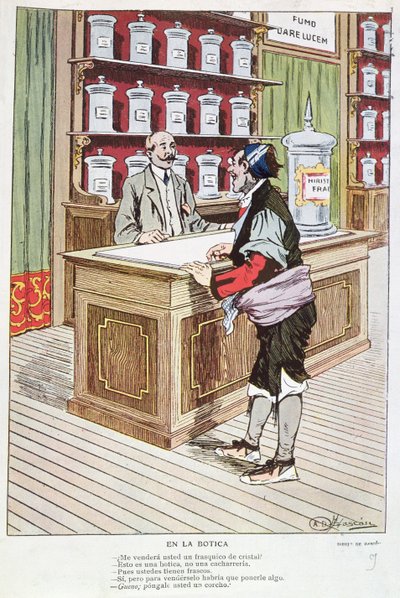 Spanish Pharmacy (colour engraving)