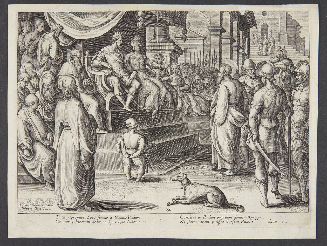 Sankt Paulus før Festus og Agrippa(St. Paulus before Festus and Agrippa)Adriaen Collaert,Jan van der Straet(after model by),Philips Galle(publisher) |