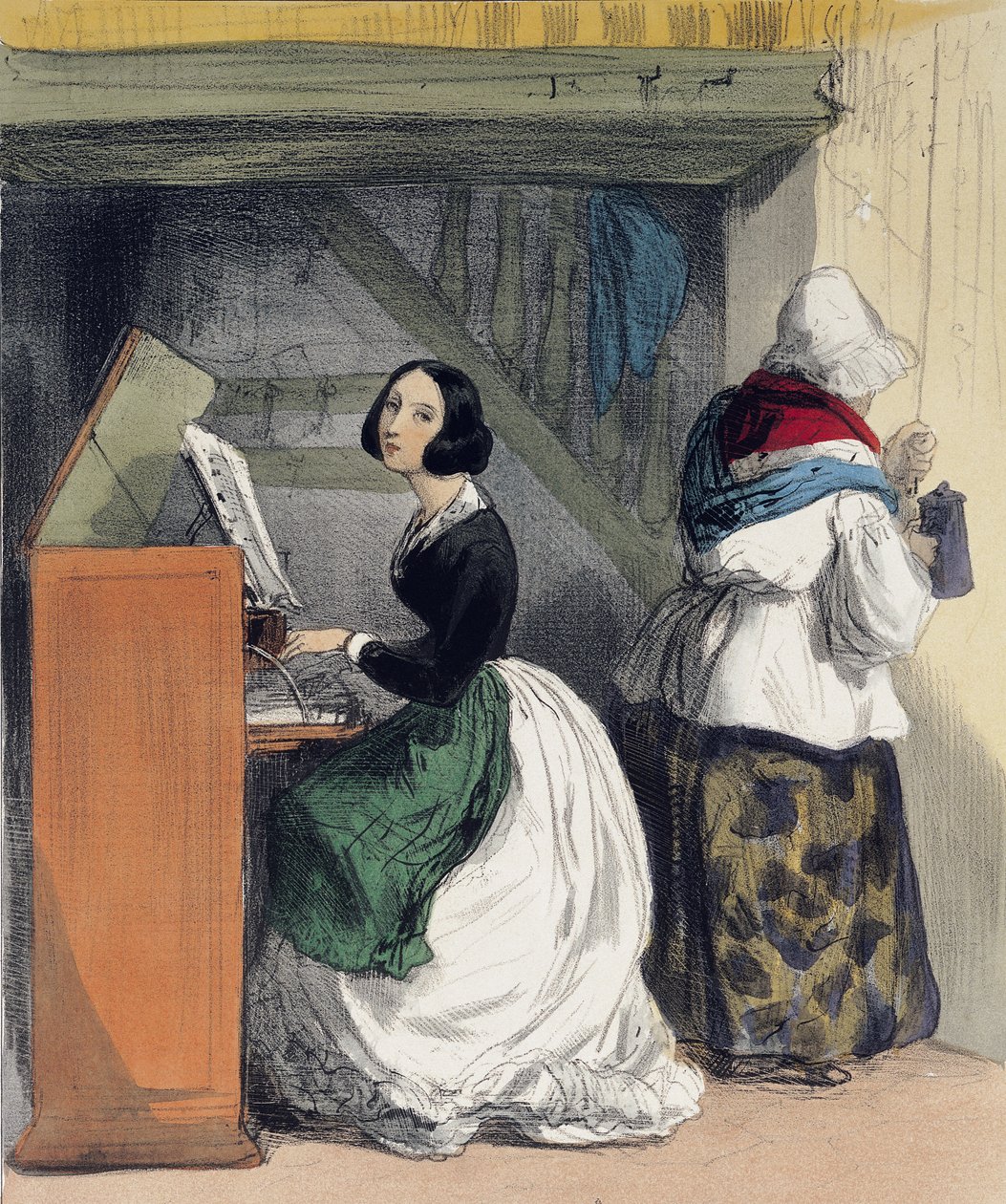 En musikskoleelev, fra 'Les Femmes de Paris', 1841-42(A Music School Pupil, from 'Les Femmes de Paris', 1841-42 )Alfred Andre Geniole |