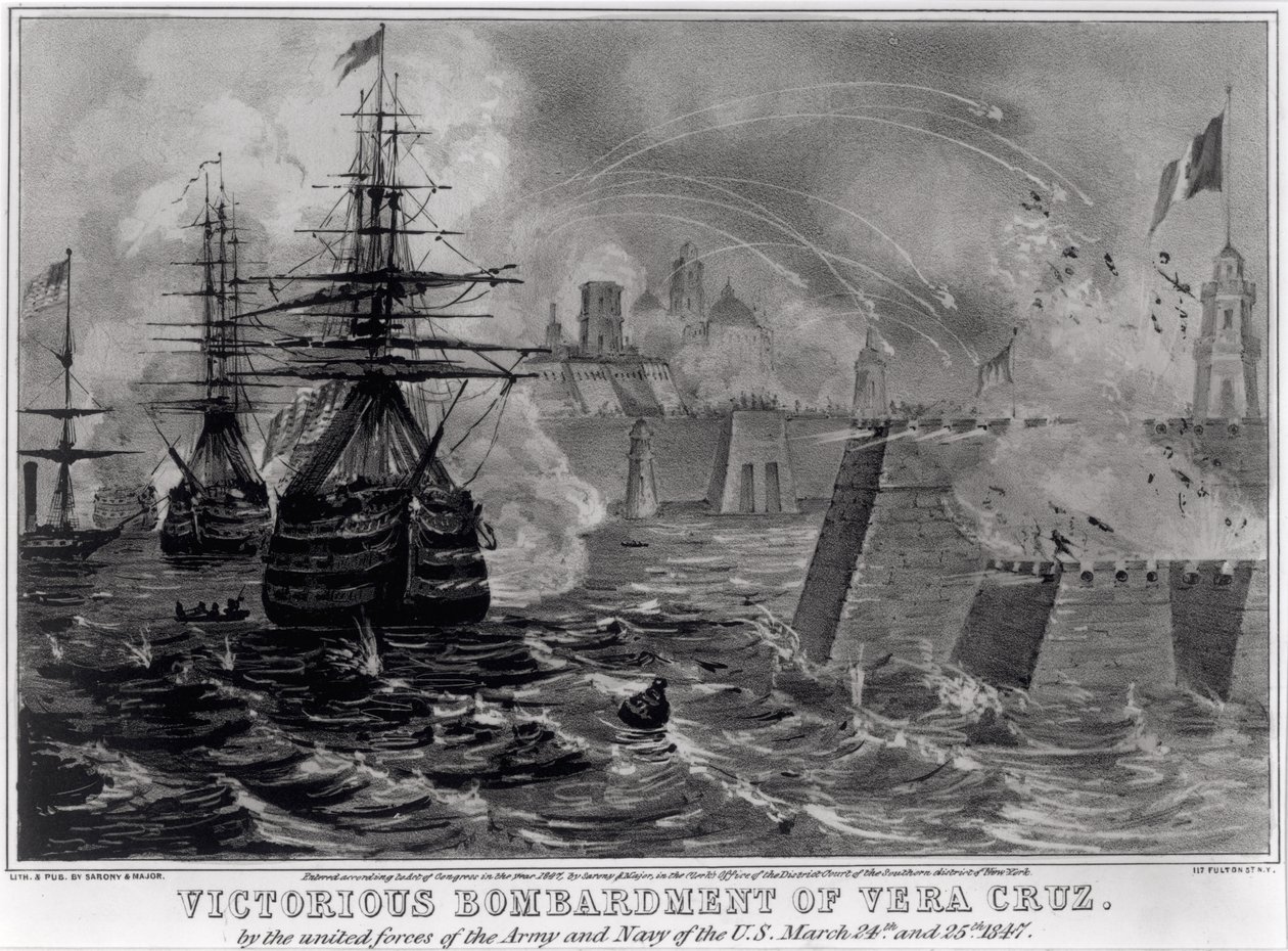 Victorious Bombardment of Vera Cruz af United Forces of the Army and Navy of the US, 24. marts og 25. marts 1847, pub. af Sarony und Major, 1847(Victorious Bombardment of Vera Cruz by the United Forces of the Army and Navy of the US, March 24th und 25th 1847, pub. by Sarony und Major, 1847 )American School |