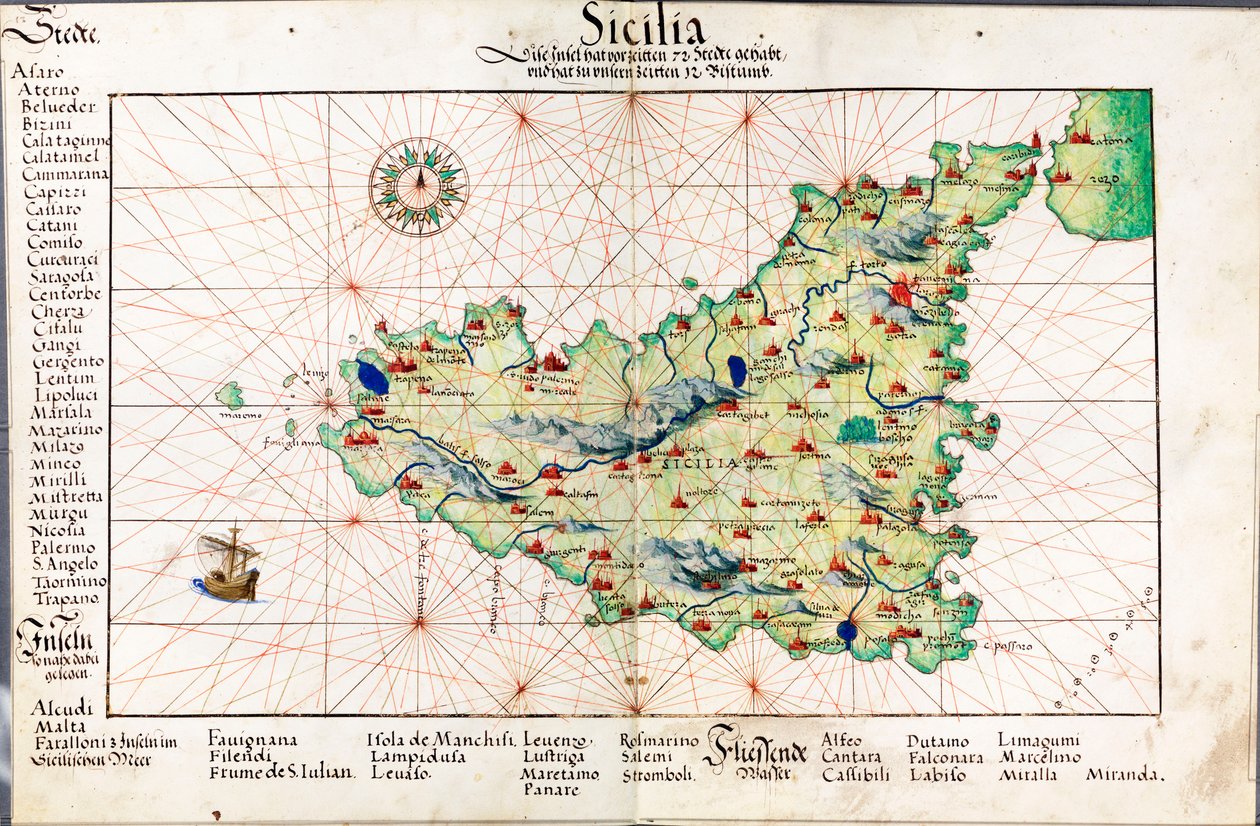 Kort over Sicilien(Chart of Sicily)Battista Agnese |