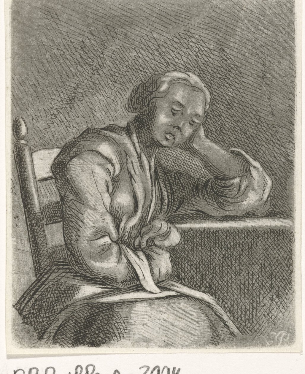 Sovende pige ved bordet(Slapend meisje aan tafel)Caspar Jacobsz. Philips(print maker) |