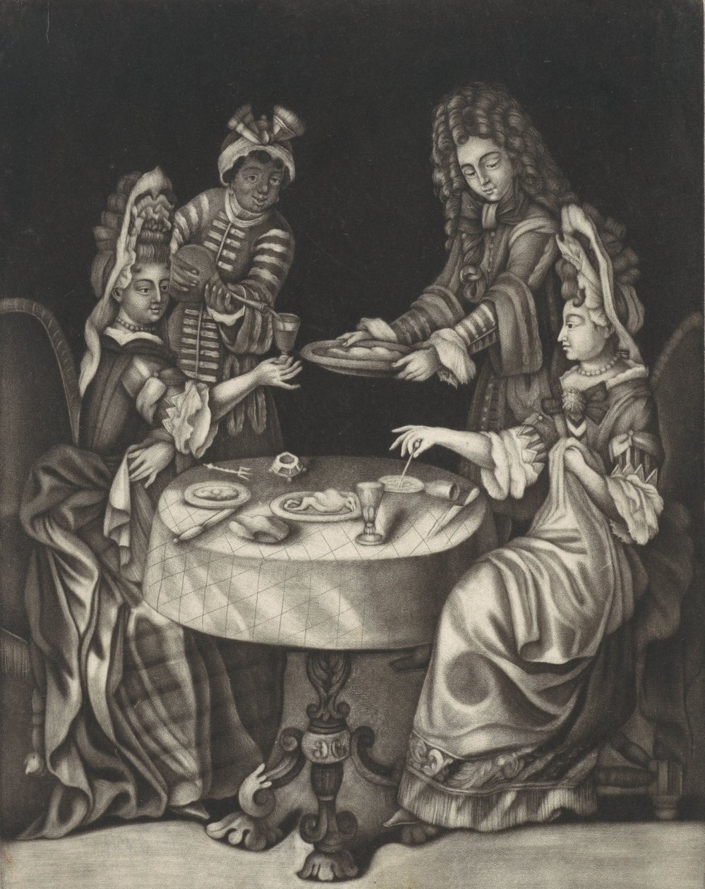 To damer, 1650-1701 (tryk)(Two ladies dining, 1650-1701 (print))Dutch School |