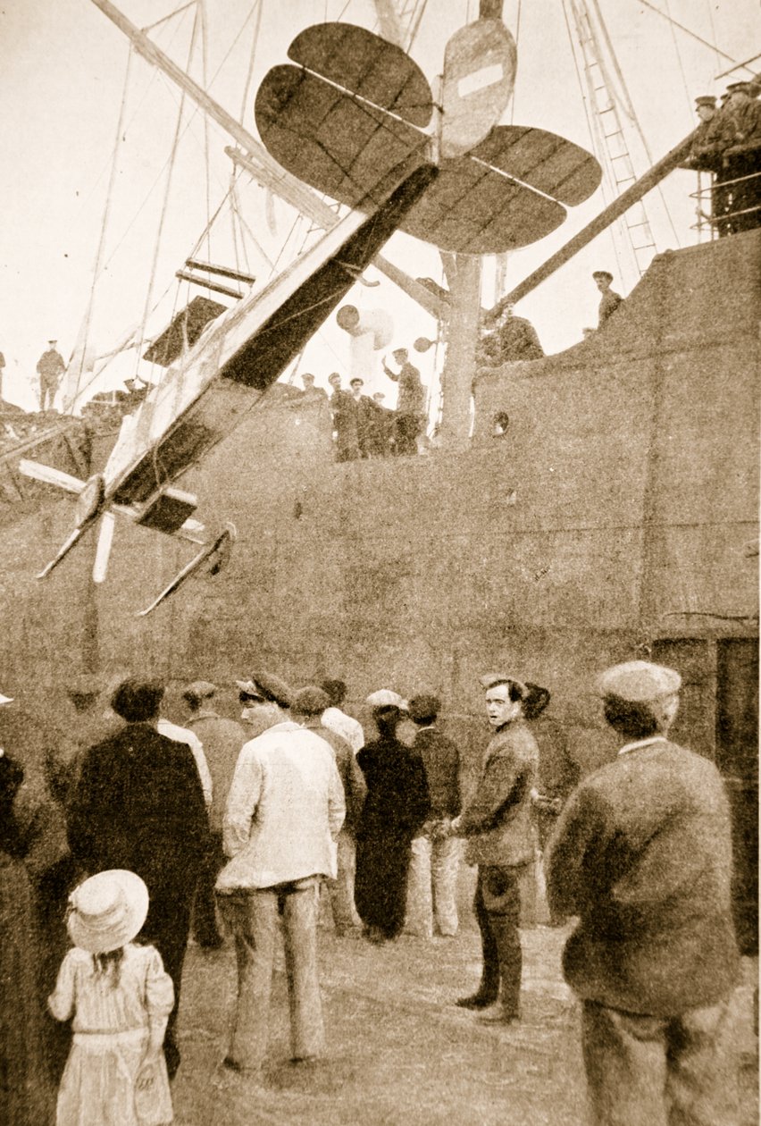 Landstigning af et britisk fly ved dets ankomst til Frankrig, 1914-19(Disembarking a British Aeroplane on its Arrival in France, 1914-19 )English Photographer |