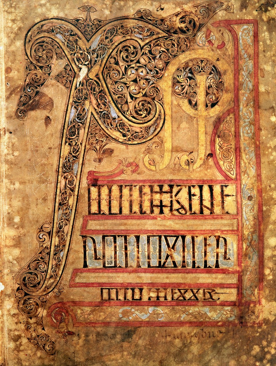 Startside fra Lichfield-evangelierne, ca. 720(Initial page from the Lichfield Gospels, c.720 )English School |