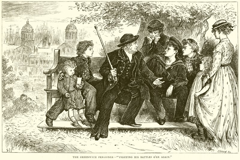 The Greenwich Pensionist--Fighting his Battles Oer igen(The Greenwich Pensioner--Fighting his Battles Oer again )English School |