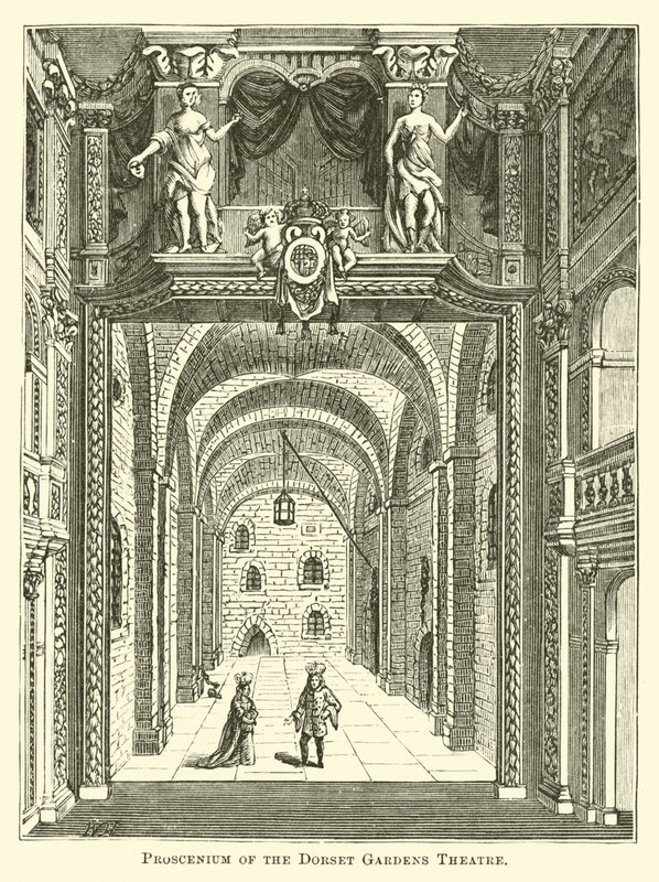 Proscenium af Dorset Gardens Theatre(Proscenium of the Dorset Gardens Theatre )English School |