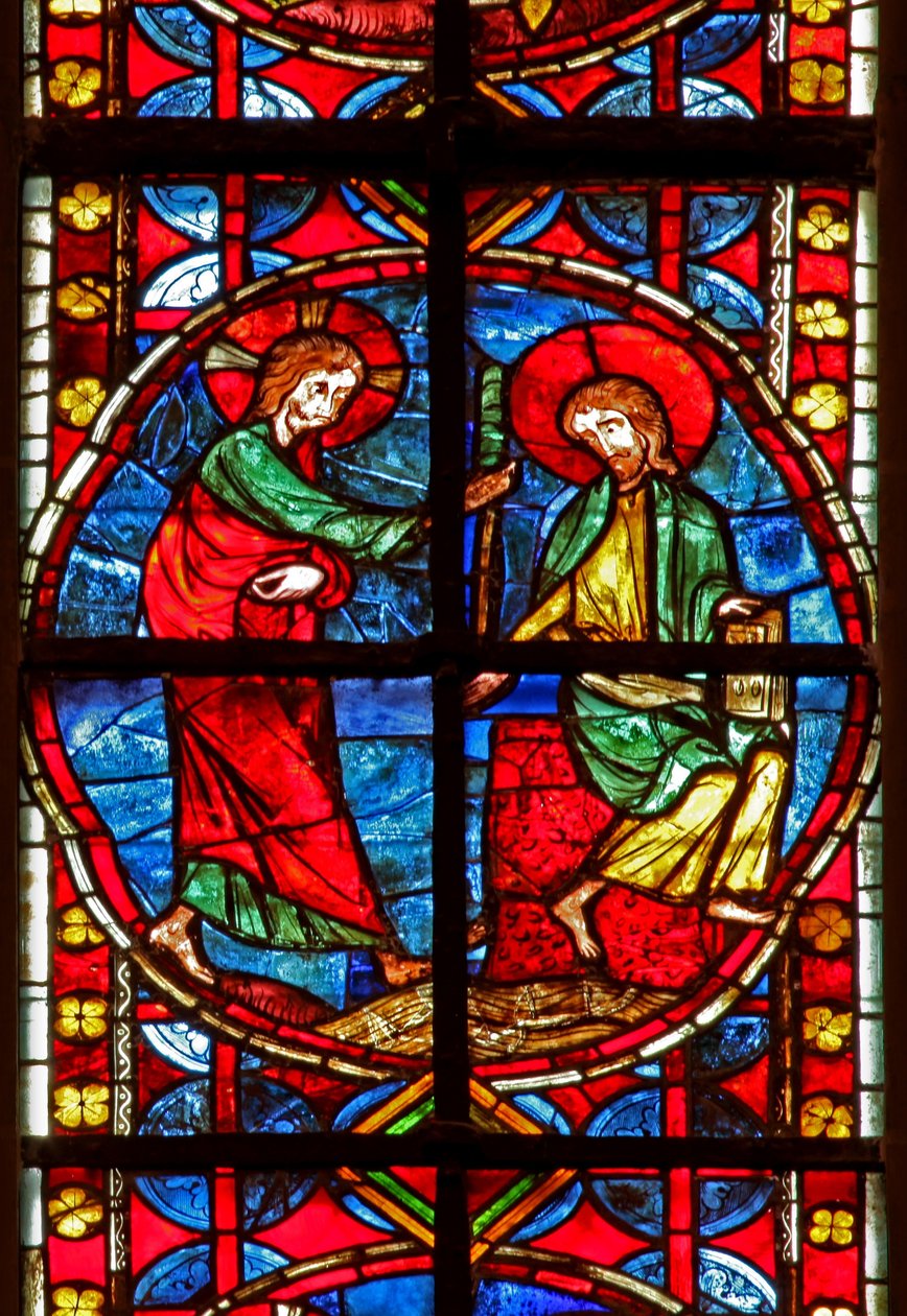 Vindue w210, der viser Skt. Jakob med Kristus(Window w210 depicting St James with Christ )French School |