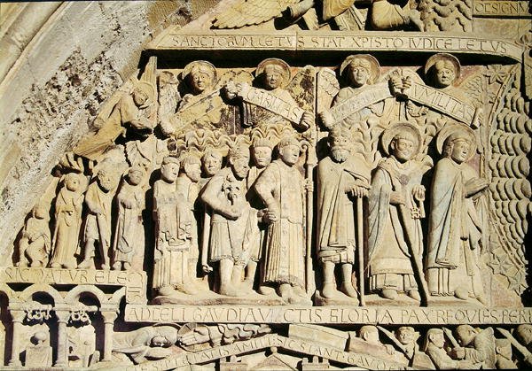 Detalje fra den sidste dom om tympanen på Vestportalen, ca.1140(Detail from the Last Judgement on the tympanum on the West Portal, c.1140 )French School |