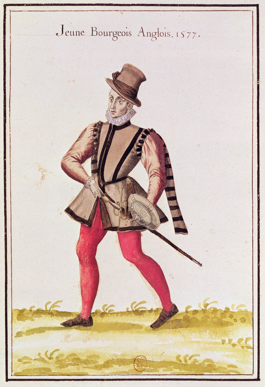 Kostumer fra landene i nord - en ung engelsk statsborger, 1577 (farvegravering)(Costumes of the countries of the north - a young English citizen, 1577 (colour engraving))French School |