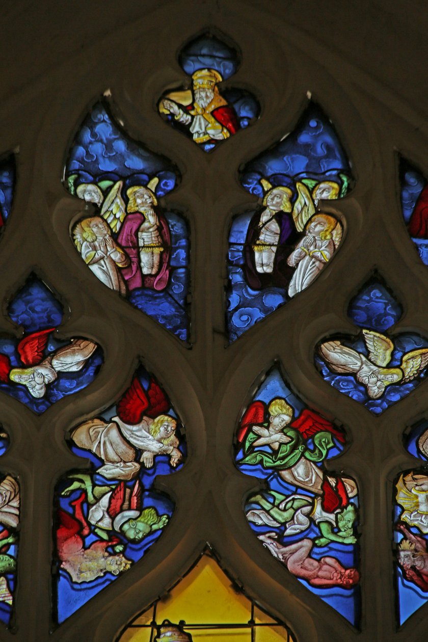 Vindue, der viser Gud, engle og faldne engle(Window depicting God, Angels and fallen Angels )French School |