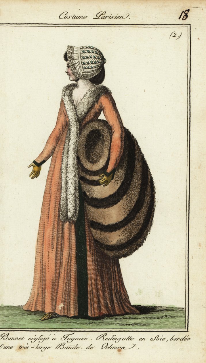Moderigtig kvinde med stor pelsmuffe(Fashionable woman with huge fur muff)French School |