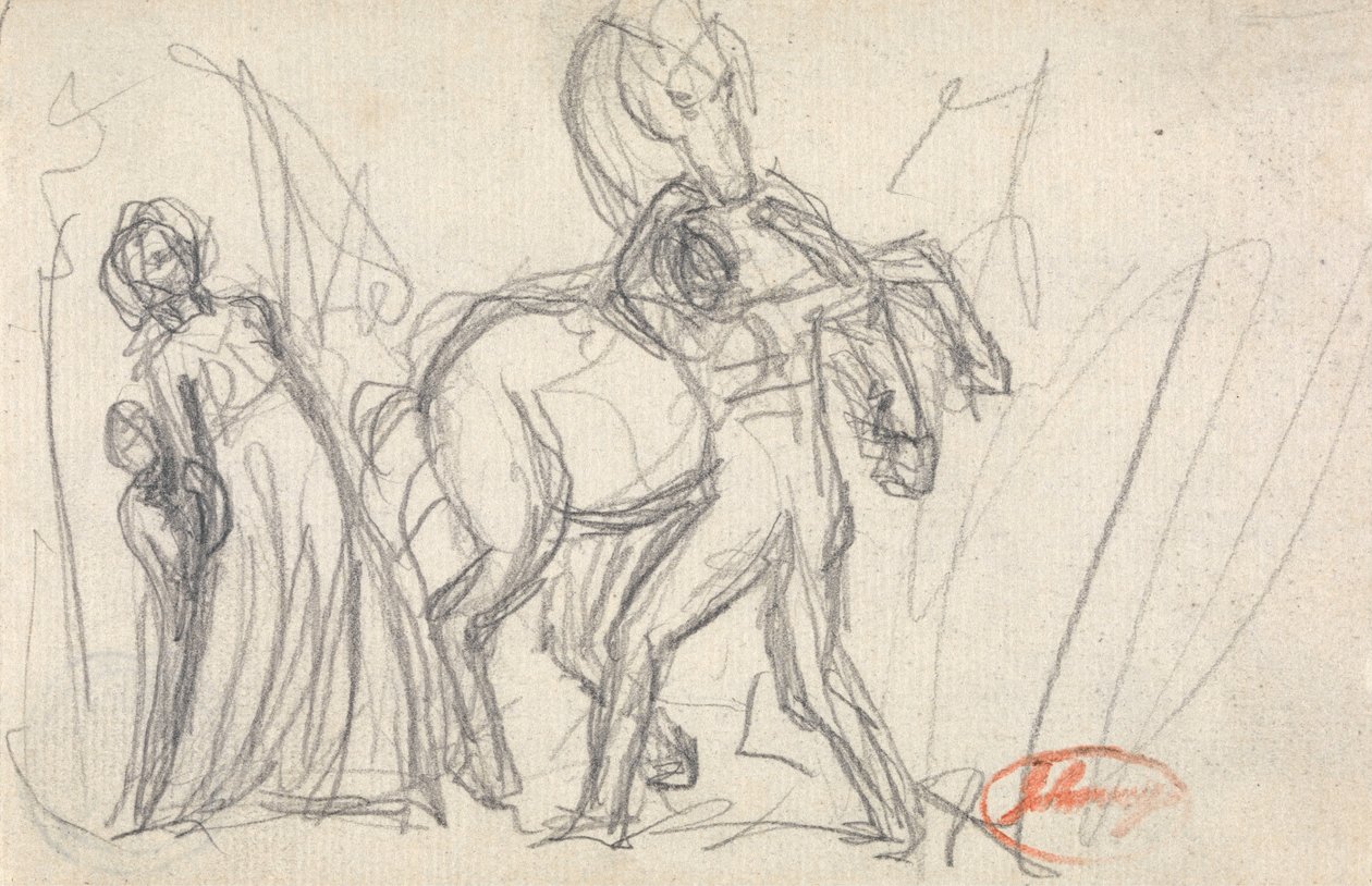 Uidentificeret emne - Kvinde, barn, mand og hest(Unidentified Subject - Woman, Child, Man and Horse)George Romney |