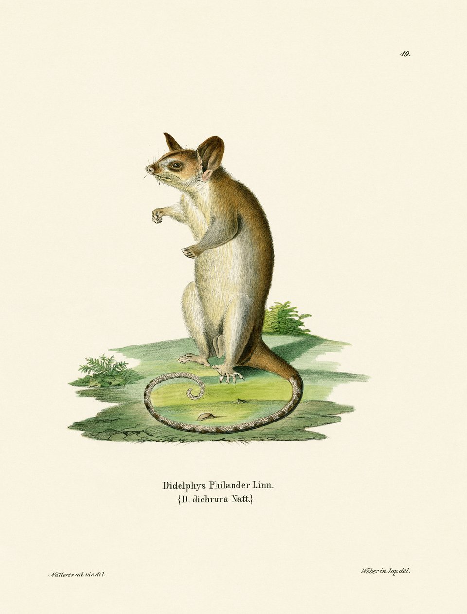 Bare-tailed Woolly Opossum (farvet gravering)(Bare-tailed Woolly Opossum (coloured engraving))German School |