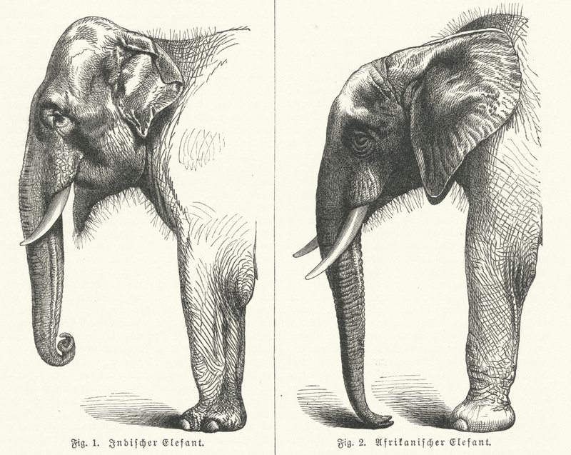 Indiske og afrikanske elefanter (gravering)(Indian and African elephants (engraving))German School |