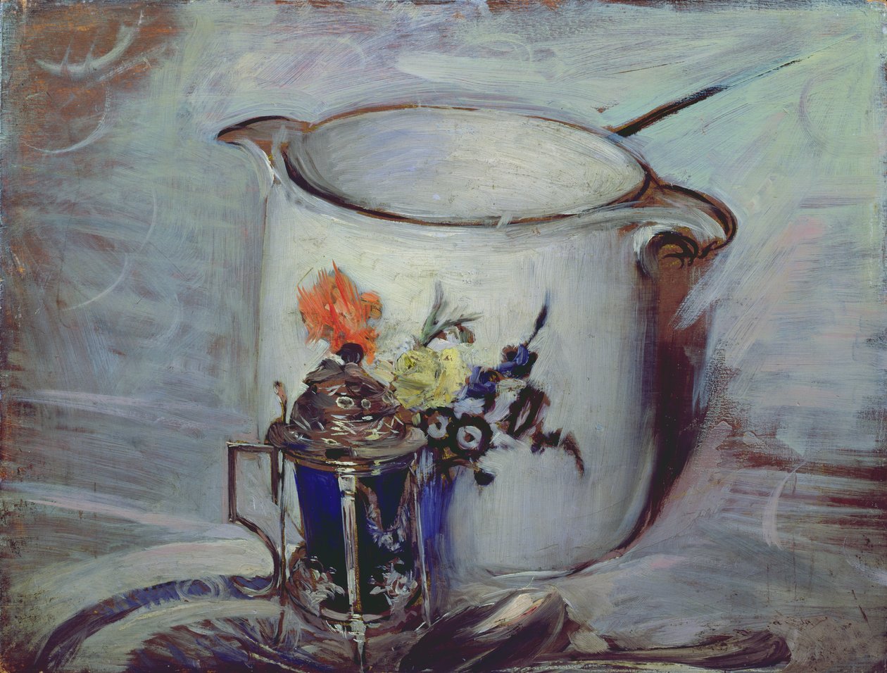 Stilleben med sennepsgryde og kande(Still life with mustard pot and pitcher )Giovanni Boldini |