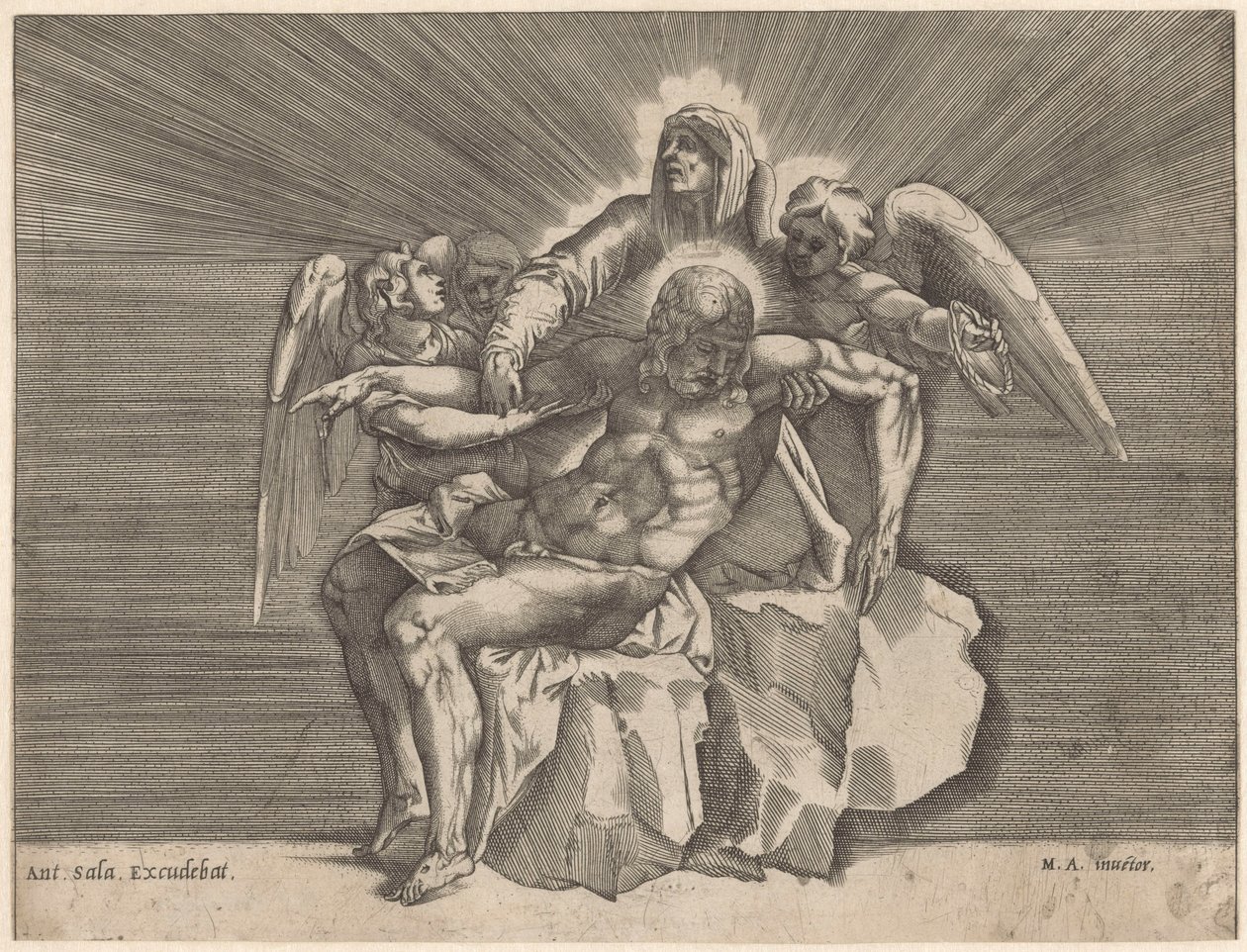 PietaGiulio Sanuto(print maker),Michelangelo(after sculpture by),Antonio Salamanca(publisher) |