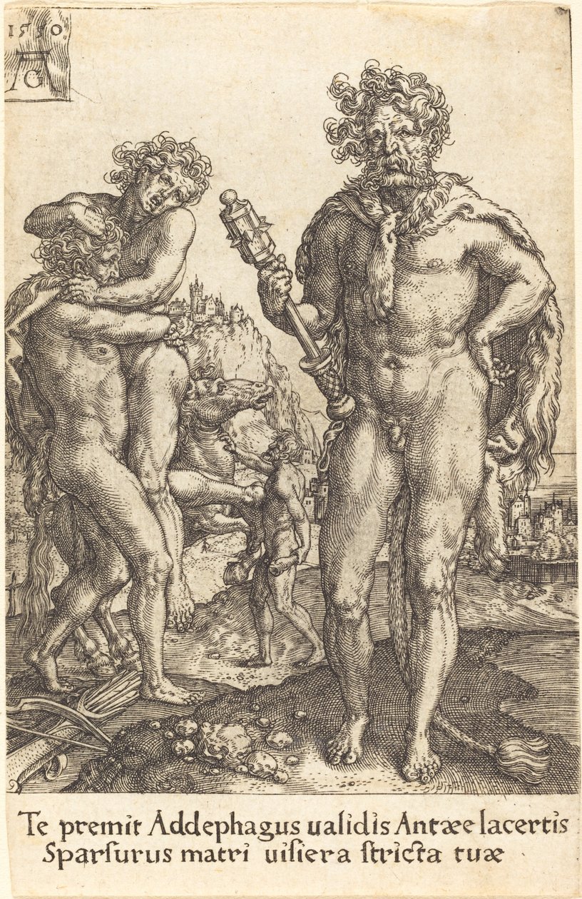 Herkules og Anthaeus, 1550.(Hercules and Anthaeus, 1550. )Heinrich Aldegrever |