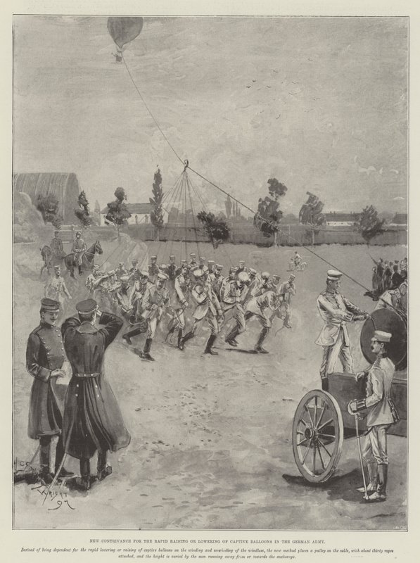 Nyt redskab til hurtig hævning eller sænkning af balloner til fange i den tyske hær(New Contrivance for the Rapid Raising or Lowering of Captive Balloons in the German Army )Henry Charles Seppings Wright |