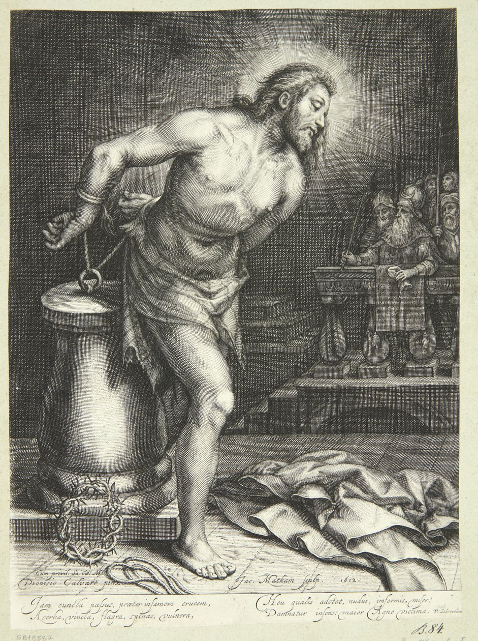 Jesus ved søjlen (efter hudflettelsen)(Jesus at the Column (after the Scourging))Jacob Matham,Denys Calvaert(after model by) |