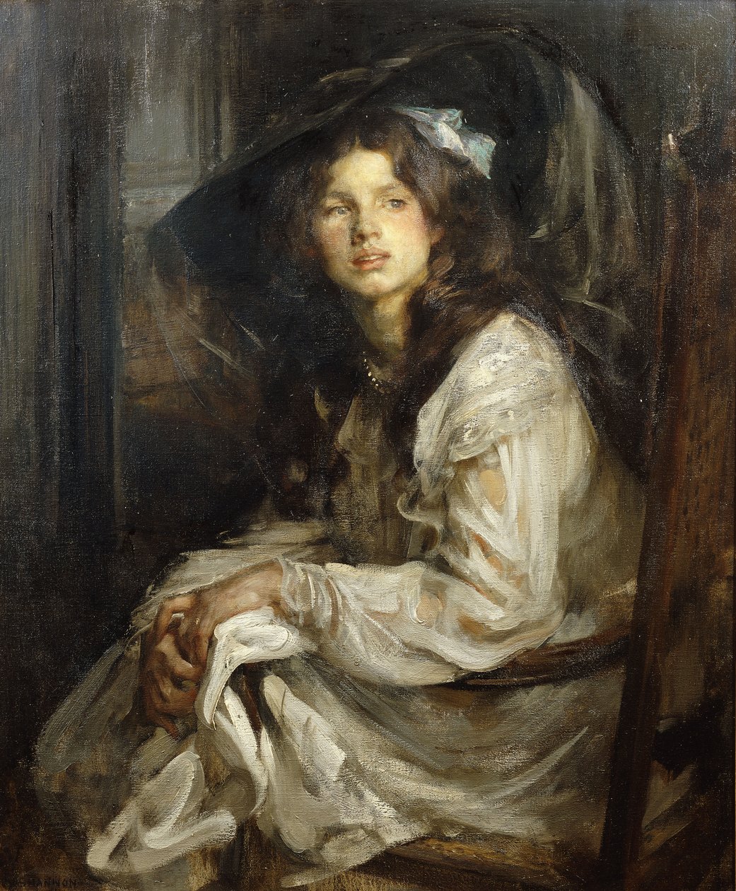 Pige siddende i en stol,(Girl Seated in a Chair,)James Jebusa Shannon |