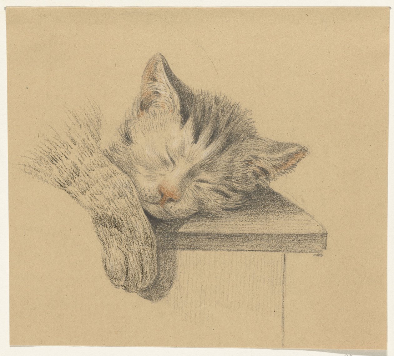 Hoved og pote af en sovende kat(Kop en pootje van een slapende kat)Jean Bernard(draughtsman) |