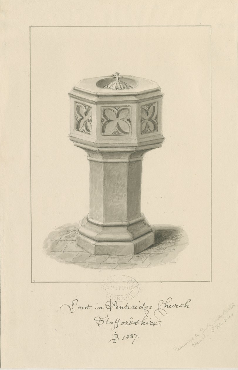 Skrifttype i Penkridge Church: sepia tegning(Font in Penkridge Church: sepia drawing)John Buckler |