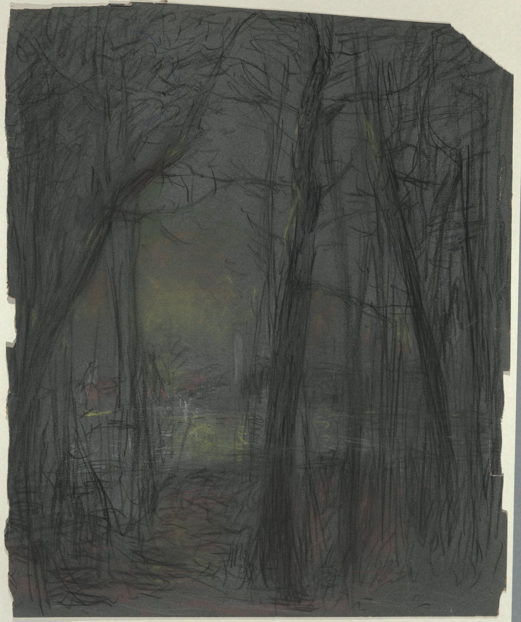 Udateret · Pastel and black chalk on grey board