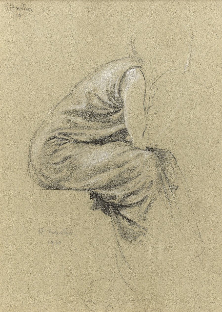 Profilstudie af en siddende figur (sort/hvid kridt på papir)(Profile study of a seated figure (black und white chalk on paper))Joseph Edward Southall |