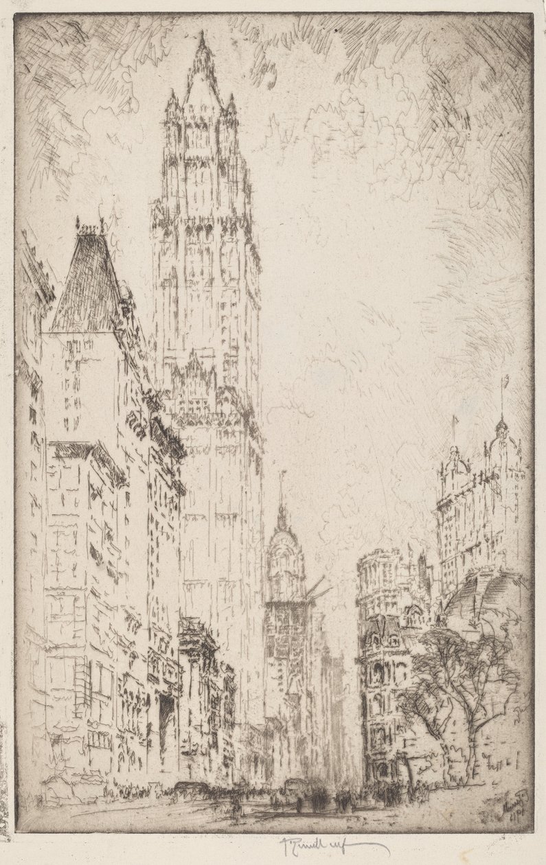 Woolworth-bygningen, 1915.(The Woolworth Building, 1915. )Joseph Pennell |