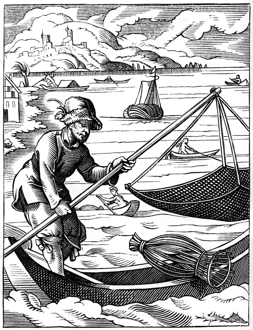 Fisker, 1500-tallet 1849.(Fisherman, 16th century 1849.)Jost Amman |