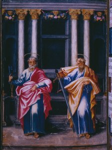 Ascension, fra en faksimile af Breviary of King Philip II of Spain, 1569 (pergament)(Ascension, from a facsimile of the Breviary of King Philip II of Spain, 1569 (parchment))Julian and Leon, Andres de Fuente del Saz |