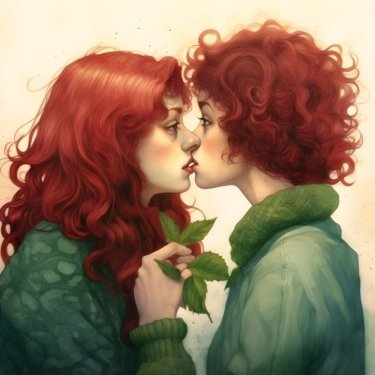 Dette billede blev skabt med hjælp fra generativ AI. 2023 · Digital Art - Computermade 3d - midjourney - Photoshop · Billed-ID: 1469168 _en_anden_pige_med_rødt_krøllet_hår_grønt