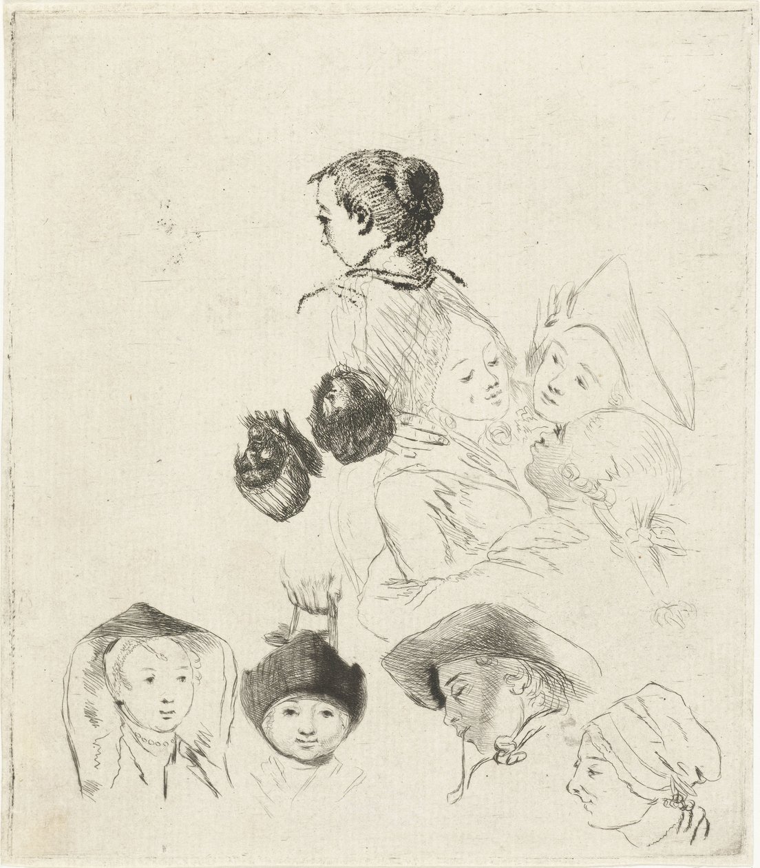 Studieark med ti hoveder(Studieblad met tien hoofden)Louis Bernard Coclers(print maker),Louis Bernard Coclers(after own design by) |