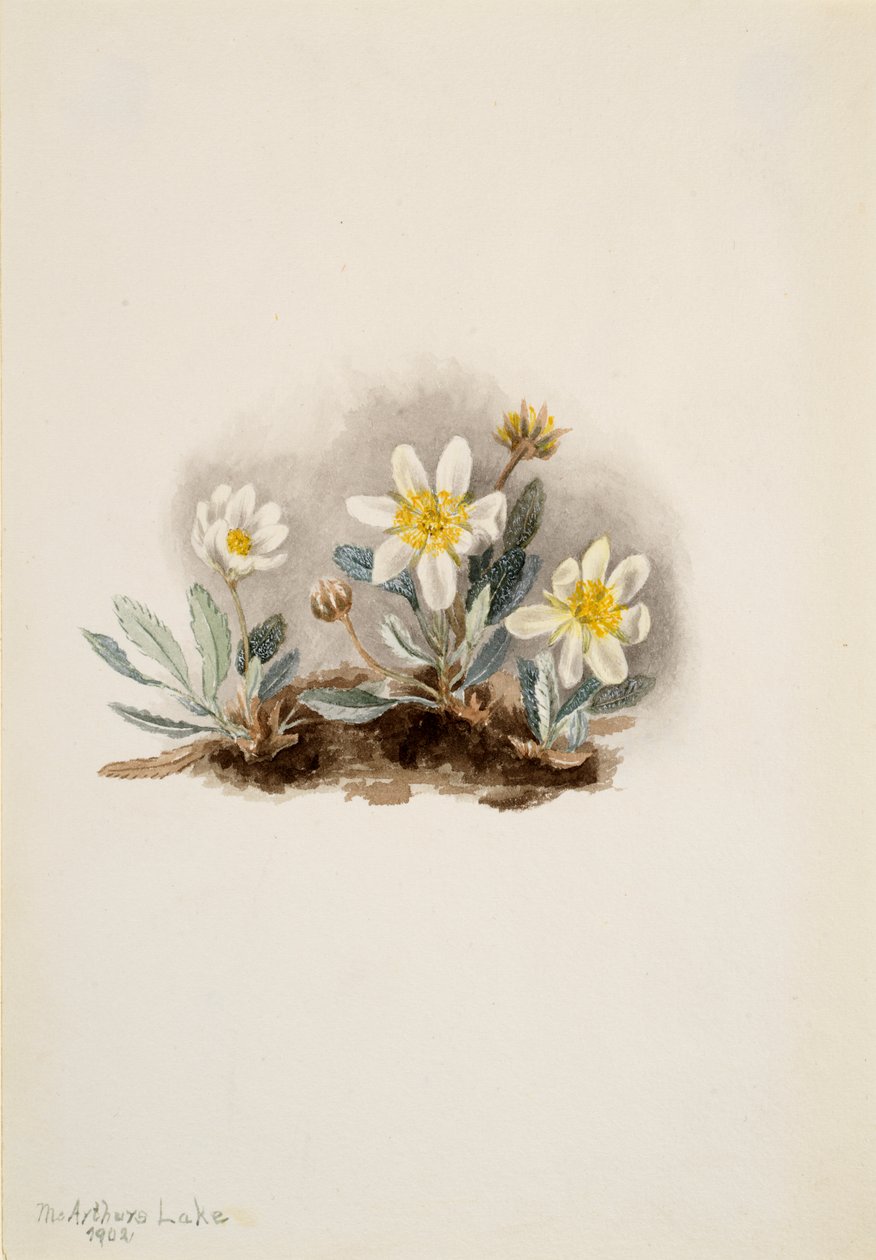 Hvid Dryad Dryas octopetala, 1902.(White Dryad Dryas octopetala, 1902. )Mary Vaux Walcott |