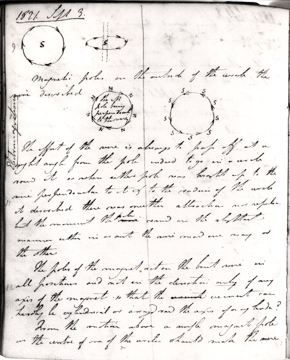 (Page 74 from Faraday's notebook, on the 'Rotation of Current Experiment', 3rd September 1821 )