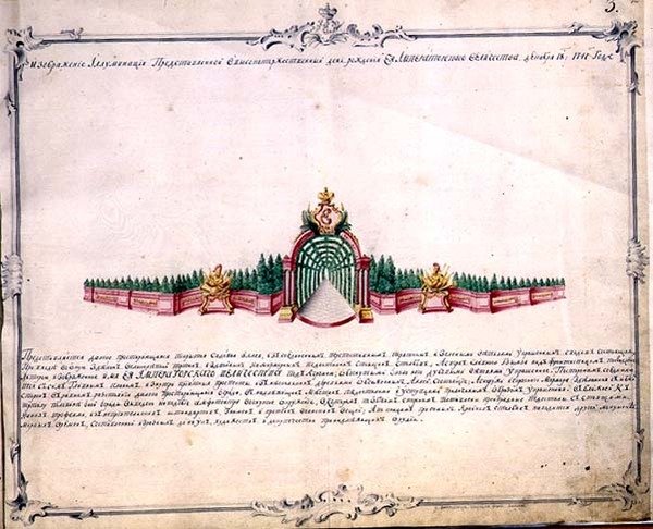 Detalje af hovedsættet til fyrværkeriet i St. Petersborg for at fejre kejserinde Elizabeths fødselsdag den 18. december 1741(Detail of the Main Set for the Fireworks in St. Petersburg to Celebrate the Birthday of the Empress Elizabeth on 18 December 1741)Mikhail Vassilievich Danilov |