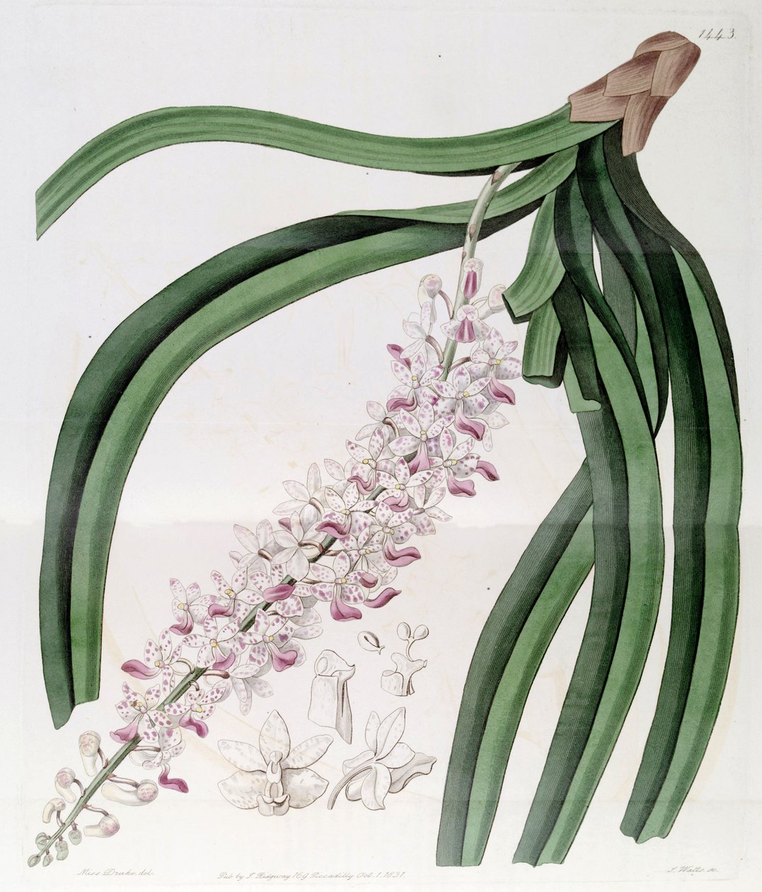 Rhynchostylis retusa (som syn. Eulophia mackaiana)(Rhynchostylis retusa (as syn. Eulophia mackaiana))Miss Drake |