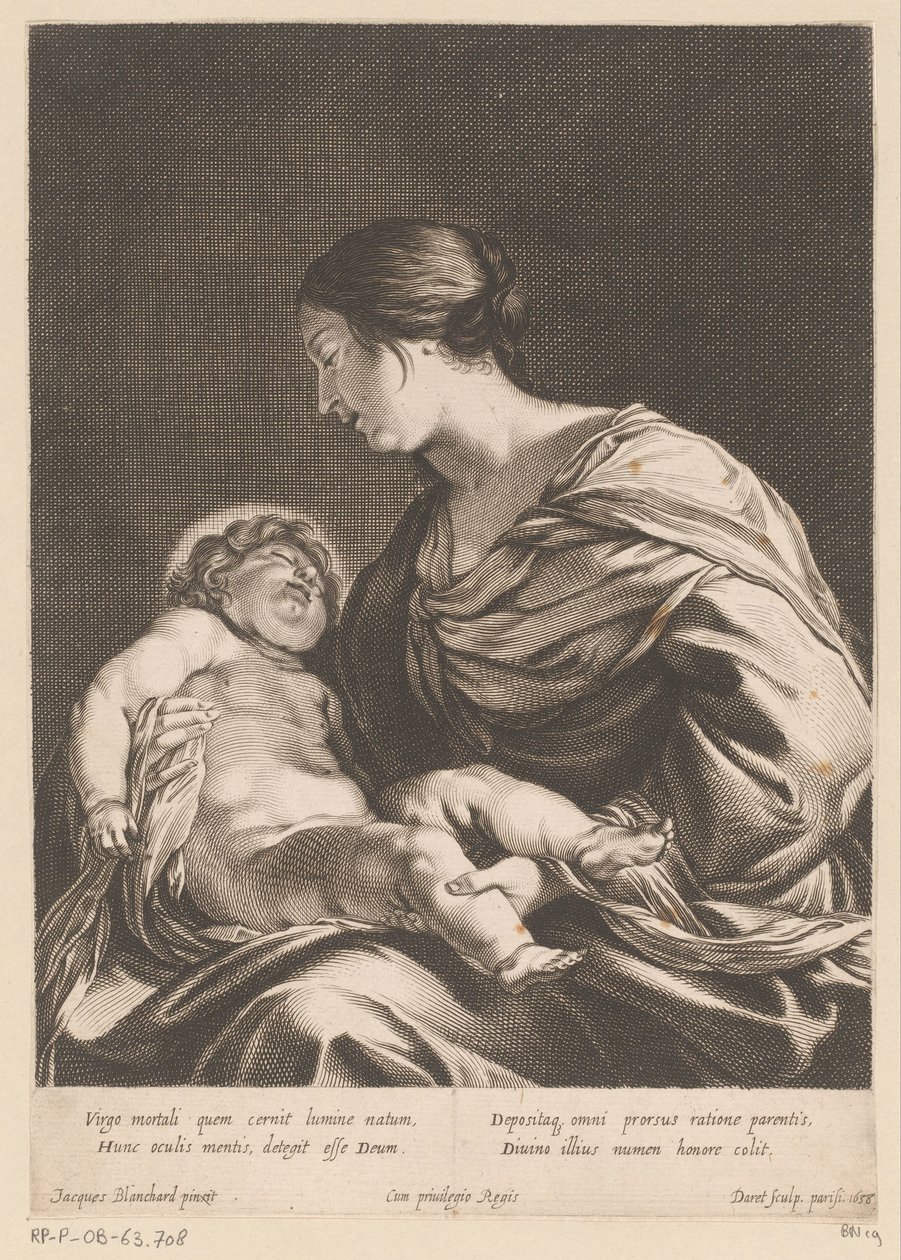 Mary med barn(Maria met Kind)Pierre Daret(print maker),Jacques Blanchard(after painting by),Lodewijk XIII (koning van Frankrijk) |