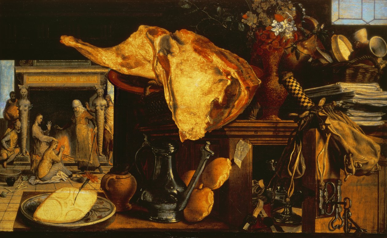 Vanitas stilleben (Kristus med Maria og Martha), 1552 (panel)(Vanitas still life (Christ with Mary and Martha), 1552 (panel))Pieter Aertsen |