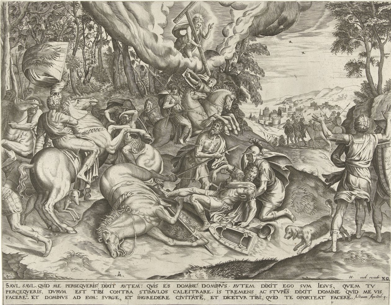 Omvendelse af Paulus(Bekering van Paulus)Pieter van der Heyden(print maker),Lambert Lombard(after design by),Hieronymus Cock(publisher) |