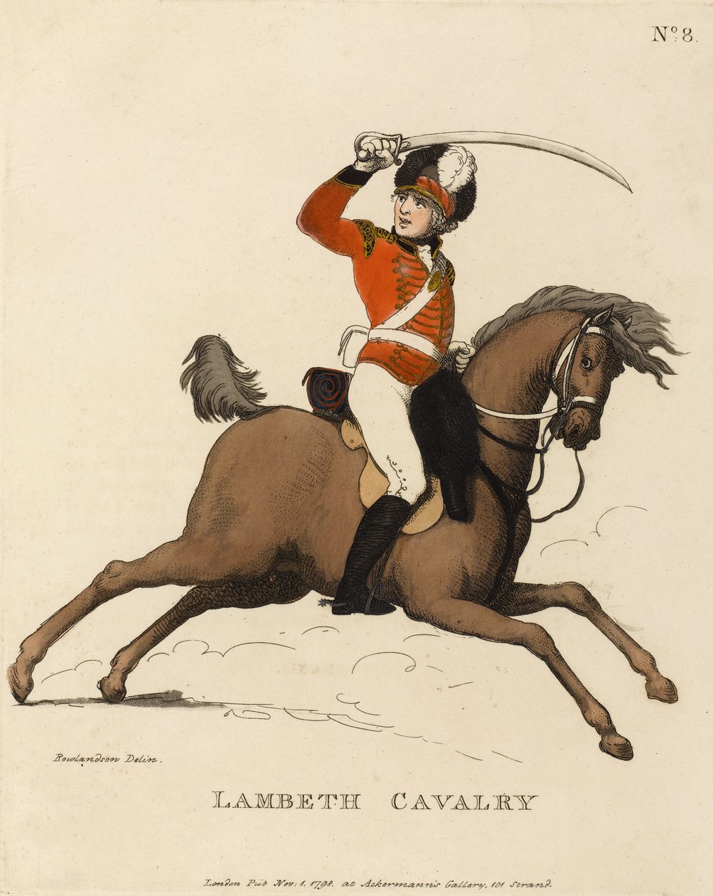 Lambeth-kavaleriet, ca.1799(Lambeth Cavalry, c.1799 )Thomas Rowlandson |