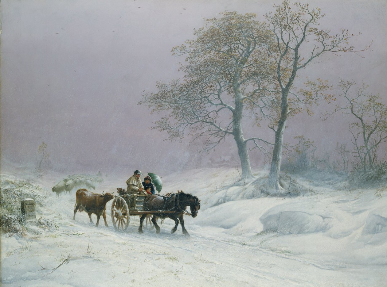 Den vinterlige vej til markedet (olie)(The wintry road to market (oil))Thomas Sidney Cooper |