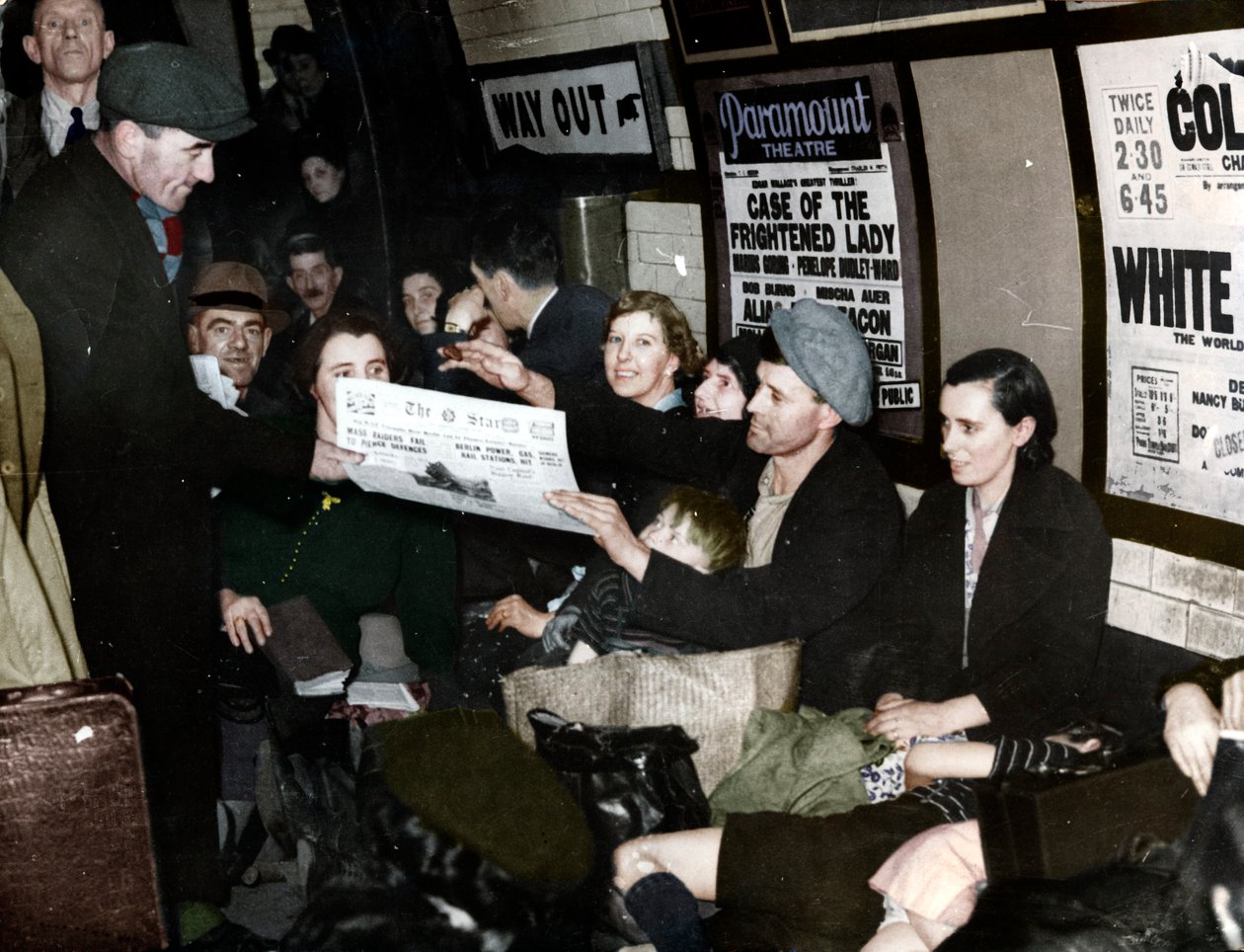 Papirsælger nede i undergrunden, London, ca. 1940(Paper seller down in the underground, London, c.1940)Unbekannt |