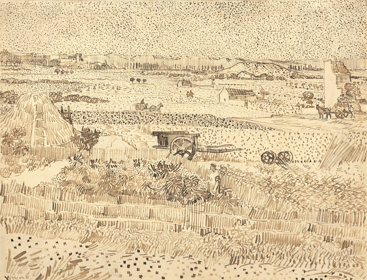 Høst - La Crau-sletten, 1888.(Harvest--The Plain of La Crau, 1888. )Vincent van Gogh |