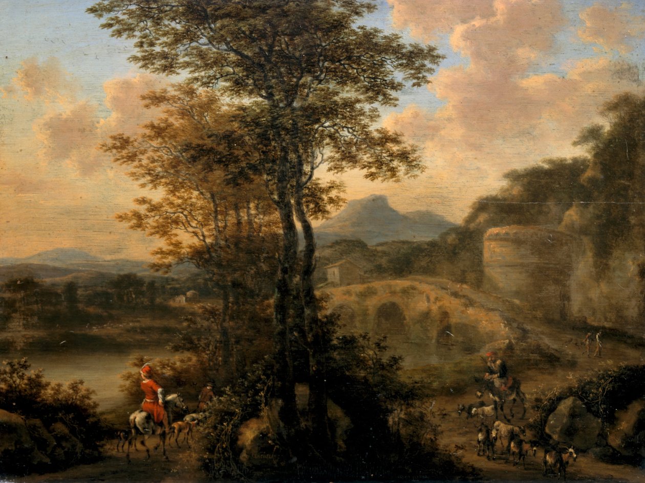 Italiensk flodlandskab med stenbro(Italian River Landscape with Stone Bridge)Willem de Heusch |