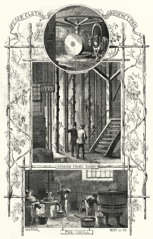 Fremstilling af gulvdug (gravering)(Floor cloth manufacture (engraving))William Henry Pike |